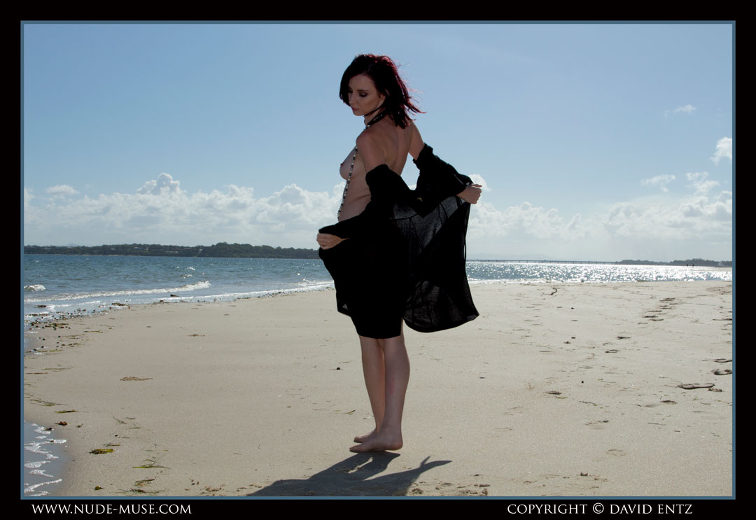 As winter draws to a close in the southern hemisphere going to the beach in the say is now possible. So Darcy-Mei made another trip to the beach. However the breeze is still a bit cool, so a cardigan was the perfect way to be nude, but still be protected fromt he wind.